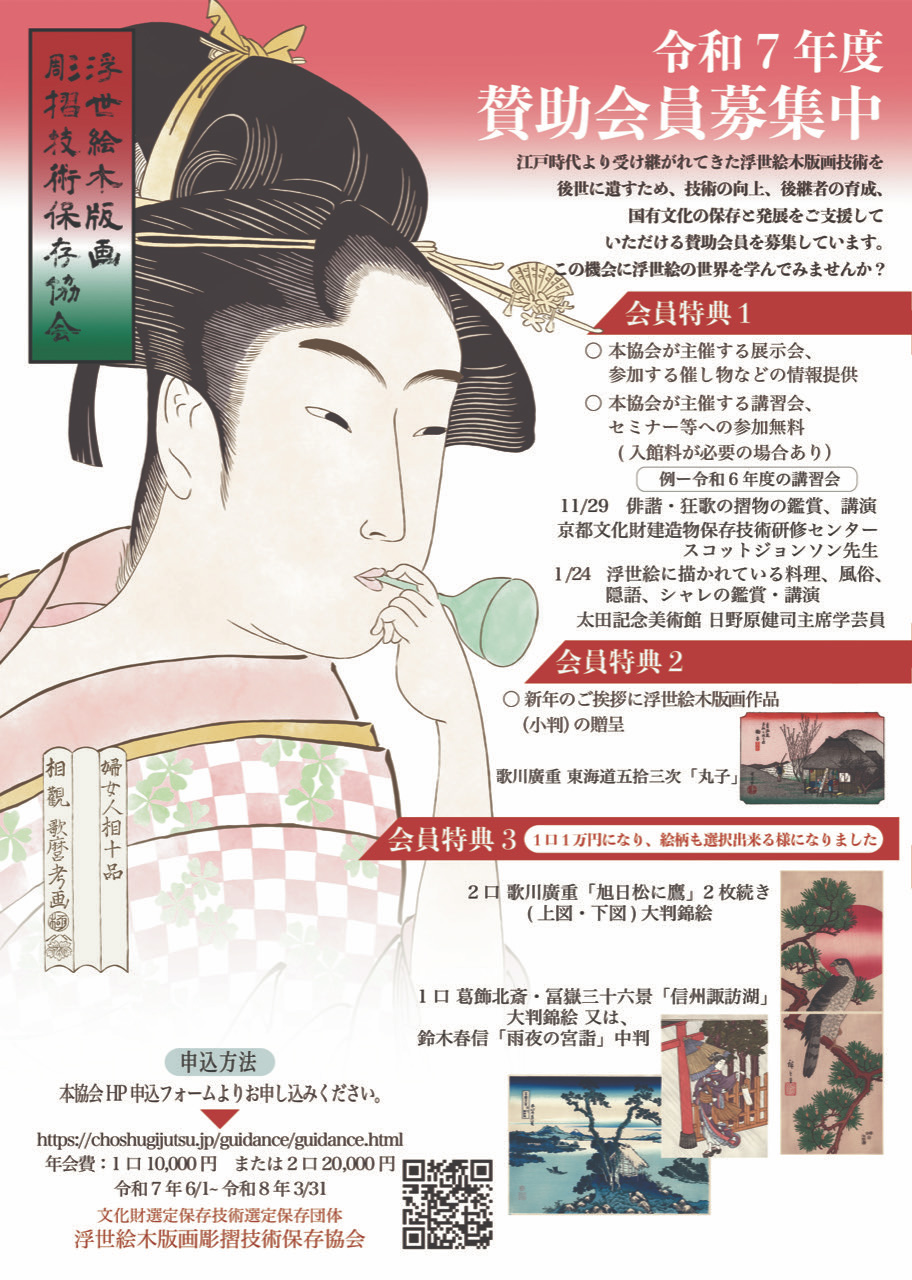 今後も文化財 浮世絵木版画の技術伝承のために積極的な活動を行っていきたいと考えておりますので、何卒ご支援くださいますようお願いいたします。